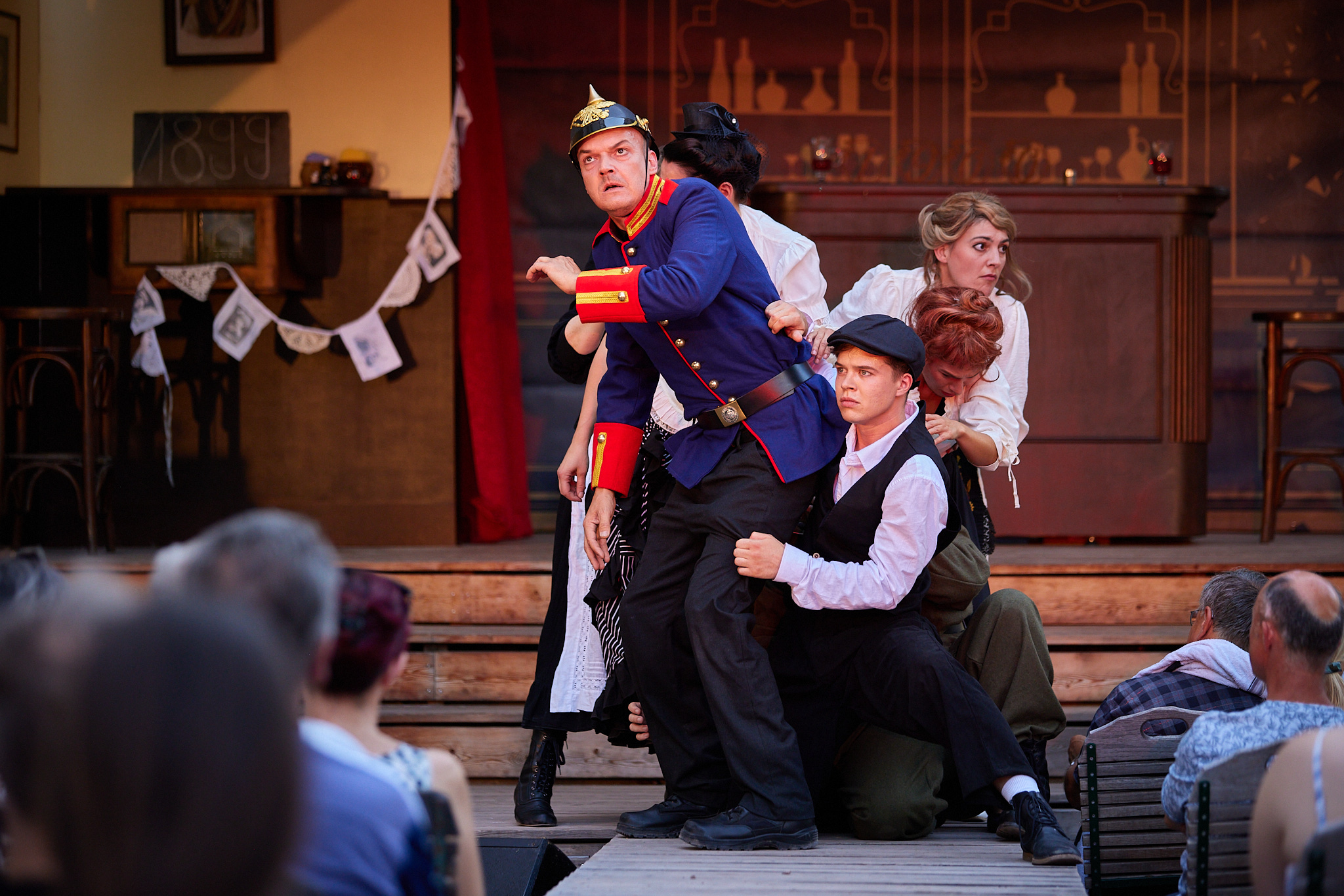 Amüsant, romantisch, nachdenklich. Alles wird anders, alles wird gut. – das war unser Sommertheater 2025 im Graben der Moritzburg. In Wilmas Musik-Kneipe trafen Sie auf originelle Stammgäste, die sich abends durch wilde Zeiten und 100 Jahre Deutschland sangen und spielten.